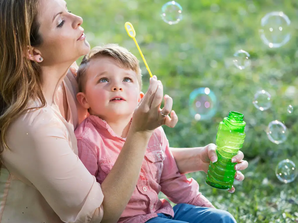 - Enséñale a tu niño que debe soplar para poder sacar las burbujas de jabón.