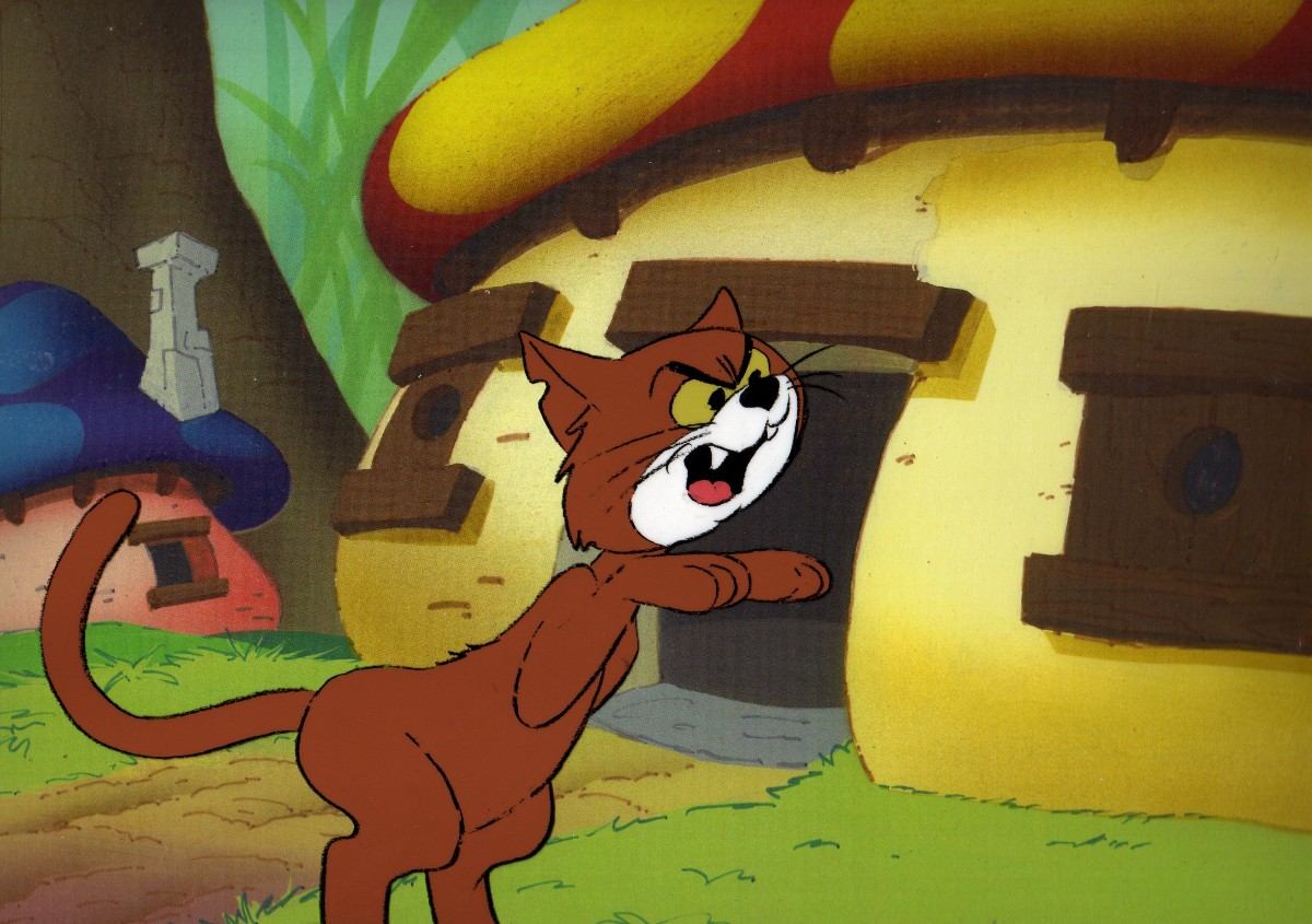 Azrael es un gatito naranja con una pequeña herida en la oreja derecha, que aparece por primera vez en 1959 debutando en la historieta “El ladrón de los pitufos” como compañero del hechicero Gargamel y además demuestra que ve a estos amiguitos azules como comida. El minino aparenta ser un gato tranquilo, pero a su vez muy impaciente.